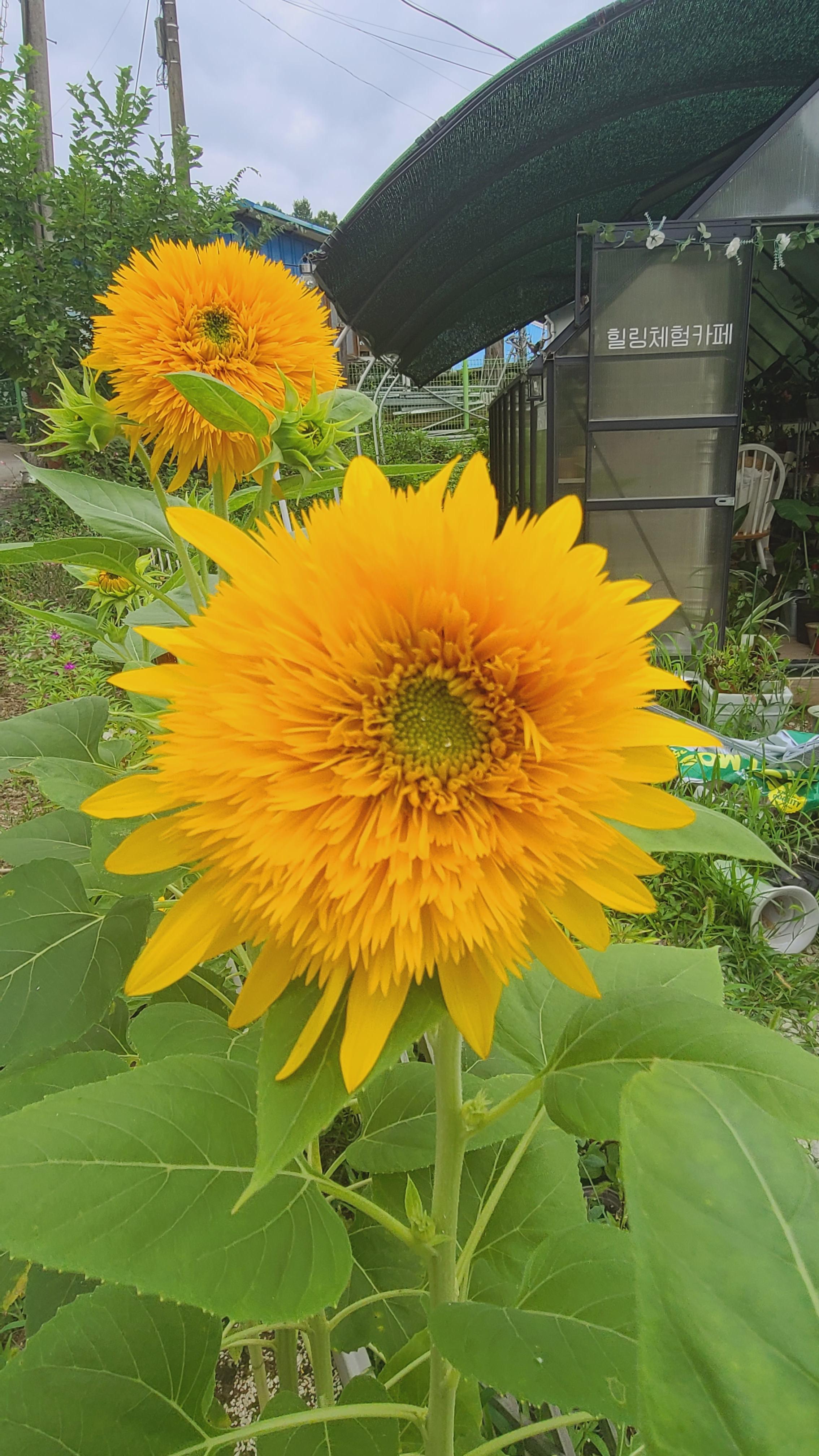 - 더블썬킹 해바라기: 겹꽃이지만 테디베어만큼 복슬복슬하지 않으며, 더 큰 꽃을 피웁니다.